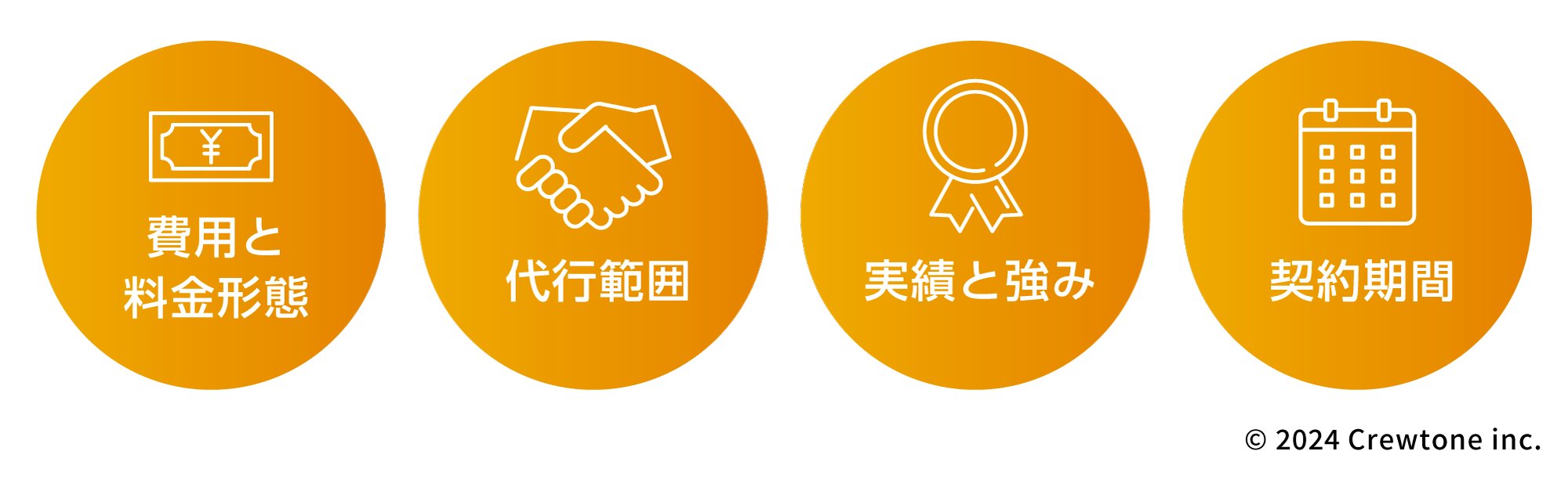 代行会社によって強みは異なりますので、検討している代行会社の実績は必ず確認するようにしましょう。